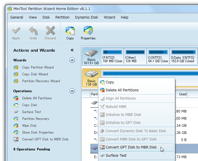 USB のフォーマットを行う時は、「MiniTool Partition Wizard」 を使うとよいでしょう※5。