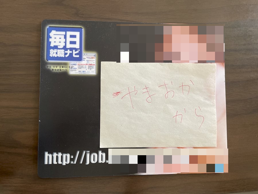 ちなみに、私が20年ほど使っている 毎日就職ナビ のマウスパッド には、メモを挟む機能がデフォルトでは搭載されていませんでした(DLC?)。