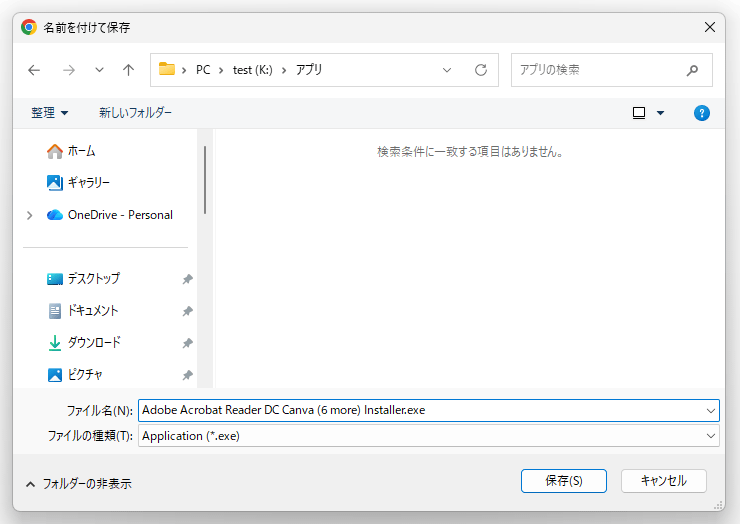 - 「名前を付けて保存」ダイアログが立ち上がるので、ファイル(インストーラー)の保存を行います。