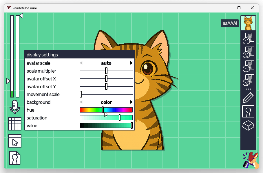 無関係な音にも反応して口を開けてしまうような時は、スライダーを上にドラッグして感度を厳しくしてみると良い。 - アバターの背景はデフォルトで緑色になっていますが、これは