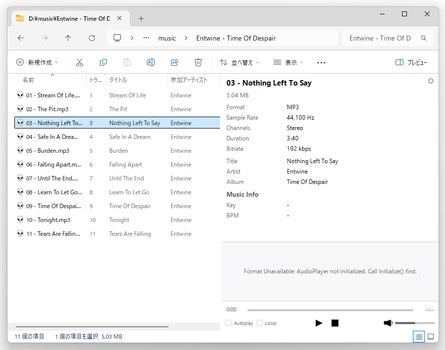 ファイルエクスプローラー上で音声ファイルを選択した時に、該当ファイルの