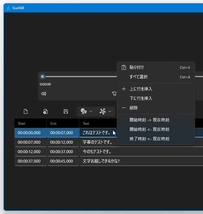 - Start - 音声開始時間(時間 : 分 : 秒 : ミリ秒)
