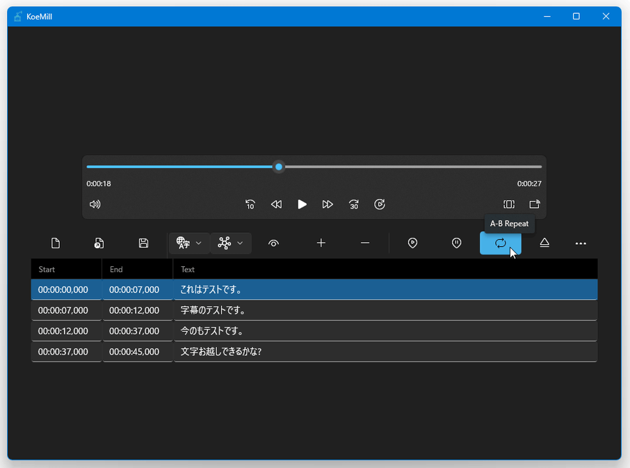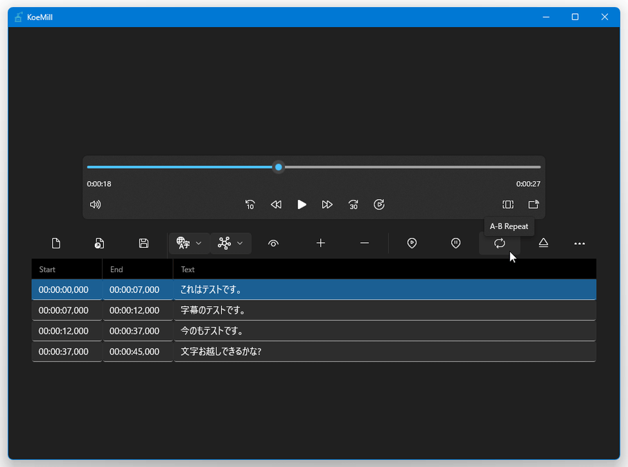 ボタンをクリックすることで再生速度を変更することができるほか、下記手順により指定した区間をリピート再生することもできたりします。