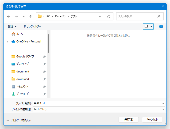 あとは、ファイルの保存先フォルダとファイル名を指定すれば OK です。