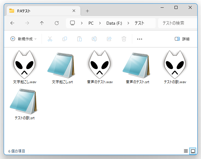 元のメディアファイルと同じフォルダ内に、文字起こしされたテキストが出力されています。
