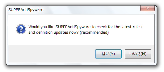 アップデートは後で行っても構いませんが、とりあえず「はい」を選択してアップデートを行っておきます。