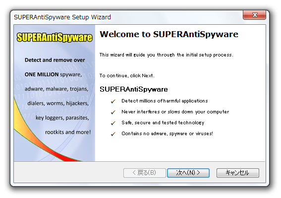 - インストールが完了すると、「SUPERAntiSpyware Language Selection」というウインドウが