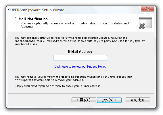 「SUPERAntiSpyware」の新着情報などを受け取りたい場合は、メールアドレスを登録しておいても