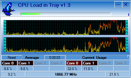 (「Average」の右にある数値は、「CPU Load in Tray」の起動から現在までの時間を表している)