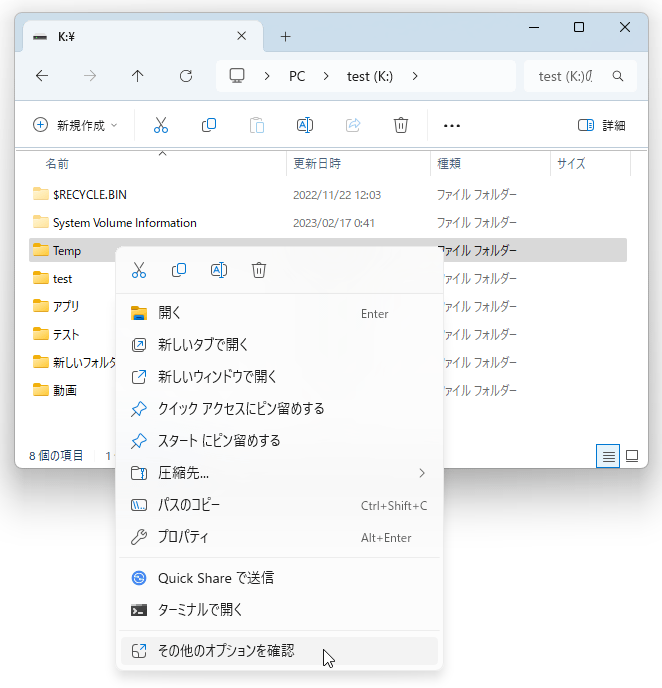 ちなみに、右クリックメニューから高速削除を実行できるようにする機能や※2、ベンチマーク用に 1 MB のファイルを 400 個作成する機能も付いています。