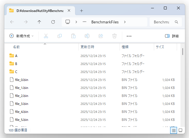 高速削除を右クリックメニューから実行できるようにする機能や、ベンチマーク用に 1 MB のファイルを 400 個作成する機能も付いています。