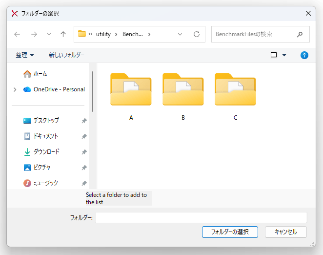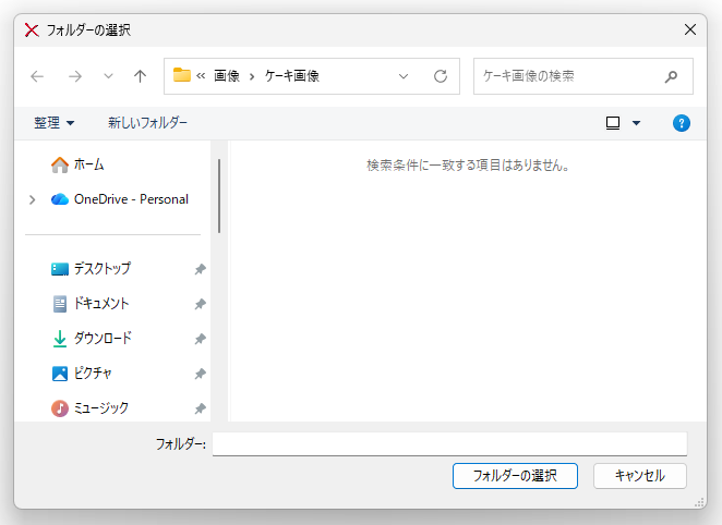 フォルダを削除する場合は、削除したいフォルダを開く → 右下にある「フォルダーの選択」ボタンをクリックします。