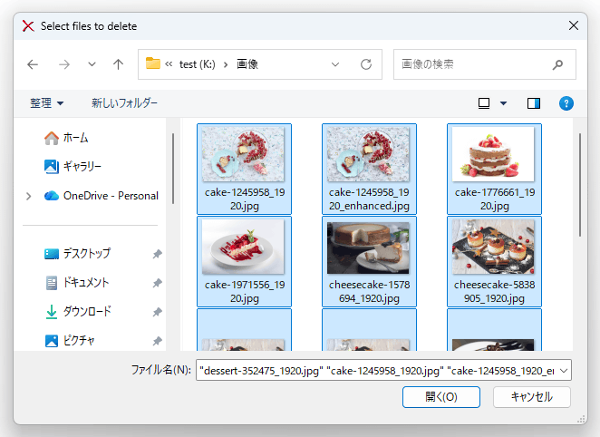 - 「フォルダーを開く」、または「Select files to delete」というダイアログが表示されます。