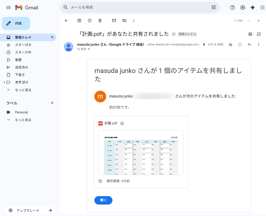 - Google ドライブで共有