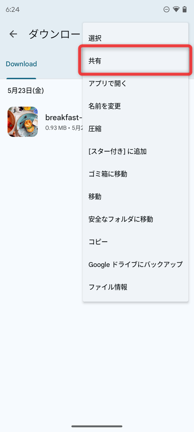 - 共有ダイアログが表示されます。 あとは、画面下部の欄で共有先のデバイスを選択するか、「Quick Share」ボタンをタップ → 共有先のデバイスを選択するかすれば OK です。 ファイルの送信が開始されるので、しばらく待ちます。