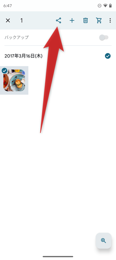 - パソコンに送りたいファイルを開き、「共有」ボタン(
